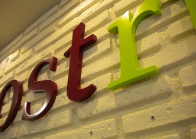 Letras o logos corpóreos fabricados en aluminio, acero inoxidable, latón, PVC , etc…